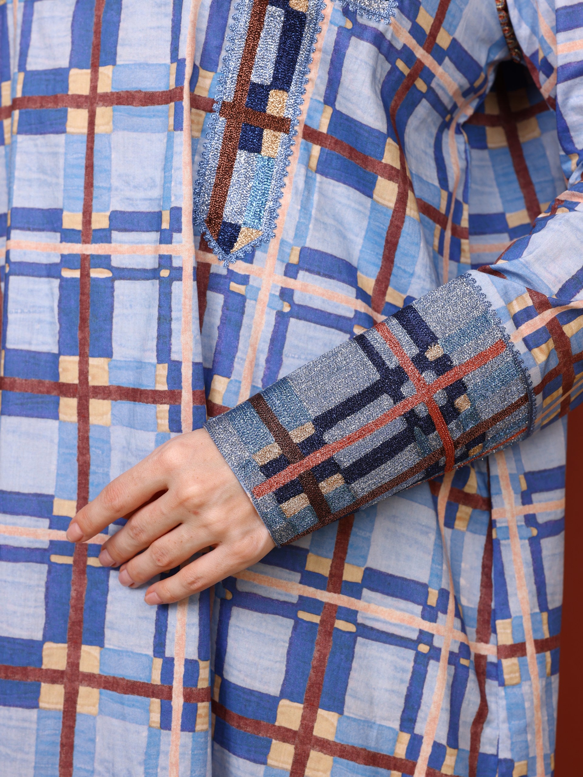 قماش قطن ليبرتي فاخر مزين بطبعة تولة بتصاميم هندسية معاصرة تجذب الأنظار.